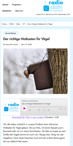 Wer singt und lebt denn da im Obstbaum? Eine ornithologische Führung mit Vogelkundler Uwe Röhrs