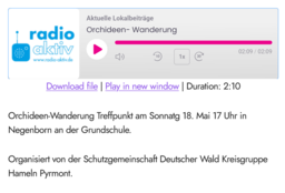 Treffpunkt ist um 17:00 Uhr bei der Grundschule in Negenborn im LK Holzminden. Von dort geht es dann gemeinsam zur Frauenschuh-Blüte.