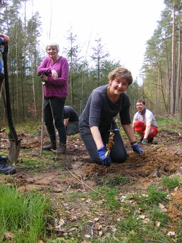Mit Hilfe der vielen fleißigen Hände wurden 200 junge Roteichen auf die Fläche eingebracht. Durch die starken Regenfälle der letzten Wochen war den Waldboden gut auf die Pflanzen vorbereitet und so besteht die begründete Hoffnung, dass sich dieses Waldstück weiterhin gut entwickeln wird. Die gelegentlichen Regenfälle der kommenden Tage trugen das ihrige zum guten Gelingen der Pflanzaktion bei. Mit Kaffee und Kuchen bedankten sich die Waldschützer anschließend bei den engagierten Mitstreitern.
